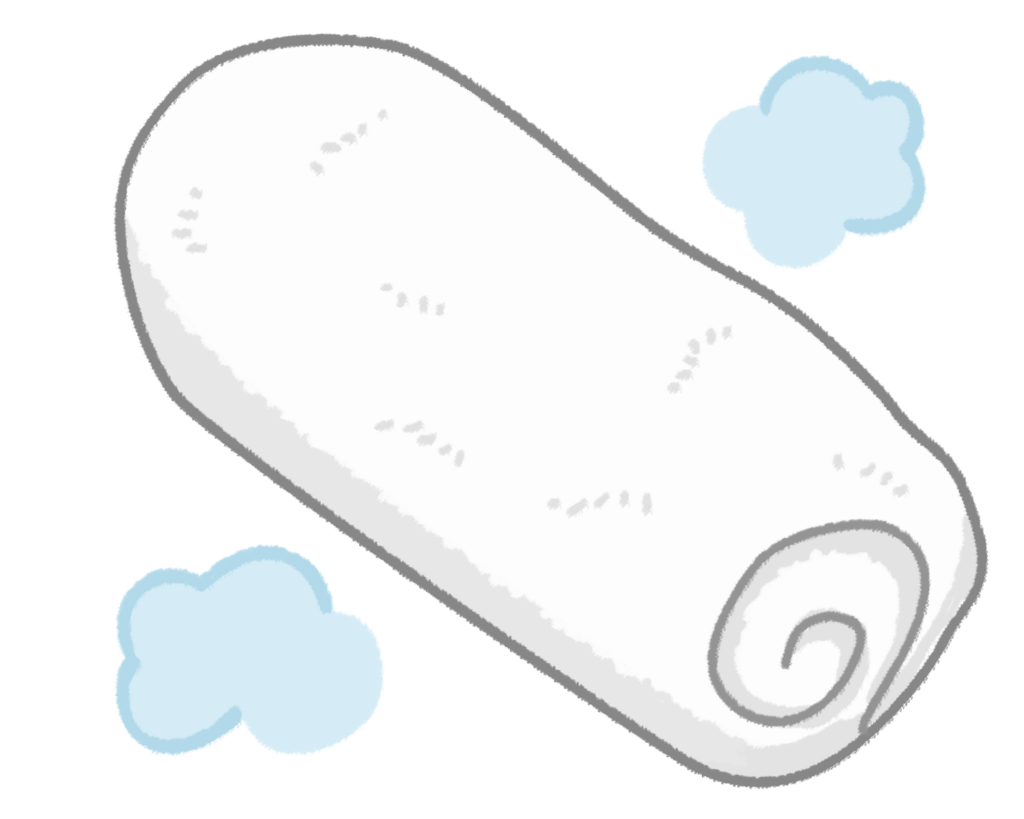 肌に直接貼れるタイプの温熱シートや、電子レンジで温めた蒸しタオルで首の後ろ側を温めます。蒸気の熱は身体により深く、広く伝わるため、全身がさらに効率よく温まります。